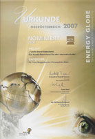 Wir waren für den EnergyGlobe Oberösterreich 2007 in der Kategorie Erde für das Projekt Kombipassivhaus Meier nominiert. Die Preisverleihung war 31.10.2007 in Linz. Würdiger Gewinner war die Fa. Fronius in Sattledt. Wir freuen uns über die Nominierung, was schon eine grosse Ehre ist!