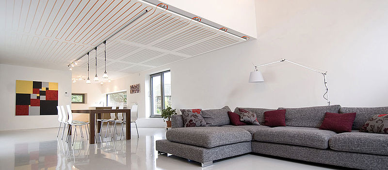 Die Oberfläche der ModulDecke kann auch mit einer schallschluckenden Akustikfunktion gewählt werden. Und das Beste: Im Winter heizt die ModulDecke Ihre Räume angenehm und behaglich.