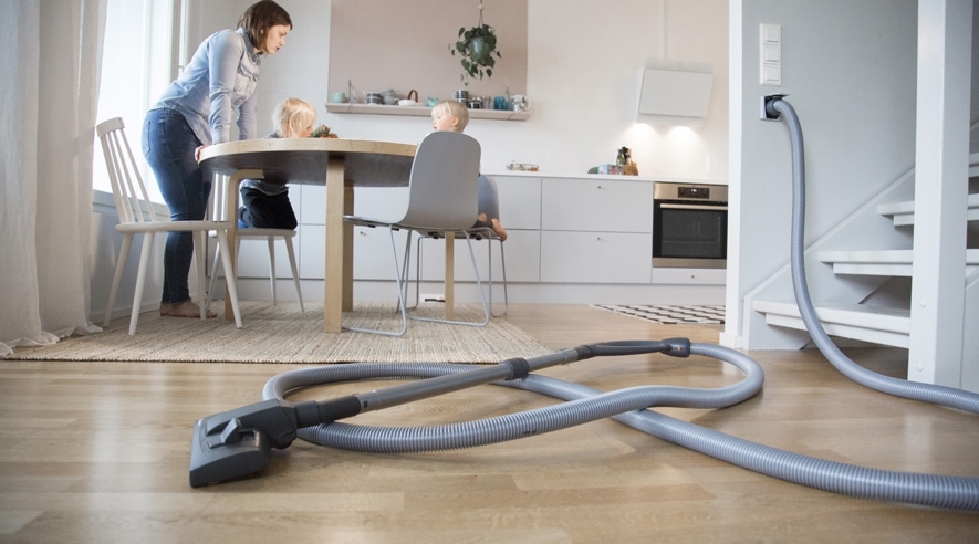 Saugen ohne Staubsauger ist leise. Der Zentralstaubsauger ist meist weit weg im Heizraum, Keller oder Garage. Mutti oder Papi saugt – das Baby schläft!
